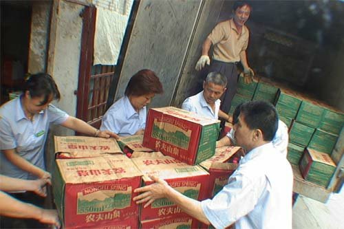 中午時分,原本顧客較為稀少的時段,在天惠超市學前街店,無錫朝陽集團特意從廠家組織的純凈水來不及上架就被等候多時的顧客搶在手里,看著一些老年顧客行動遲緩地將整箱純凈水艱難地搬動,理貨員們跑前跑后為他們準備推車。