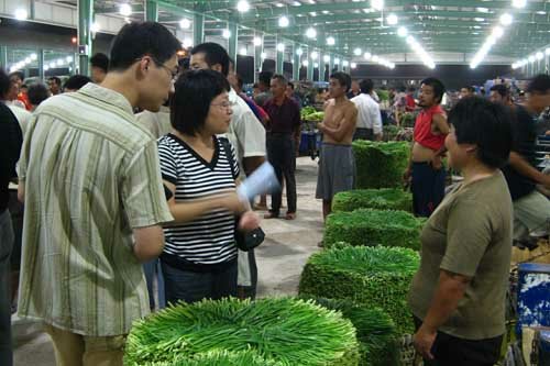 在外菜區(qū)交易大棚內(nèi),來自鹽城大豐的經(jīng)營(yíng)戶張玉祥正滿頭大汗地拾掇他的蔬菜。“我今天特意早走的,本以為還會(huì)比較擠,沒想到交通很順暢。”為迎接開市,老張和他的6噸蔬菜昨晚八點(diǎn)多鐘就到了。他欣喜地說,新市場(chǎng)給他的第一感覺就是交通便利,秩序比以前好,管理也更加嚴(yán)格了。來自山東壽光的老任也有同感。他告訴記者,以前他的運(yùn)輸車從高速公路下來到老交易市場(chǎng)要半個(gè)多小時(shí),有時(shí)晚到了還要堵上半天,汽車的轟鳴聲不時(shí)引來周圍被吵醒居民的責(zé)罵,“現(xiàn)在好了,高速下來一會(huì)就到了,還不會(huì)堵。” 在1萬多平方米的本地菜交易大棚內(nèi),來自朝陽各蔬菜基地的2000多戶菜農(nóng),整齊有序地將各自蔬菜排成長(zhǎng)長(zhǎng)的四列。鴻山鎮(zhèn)菜農(nóng)侯建南指著整齊擺放著的三筐韭菜說:“這個(gè)地方多舒暢啊,以前只能在前面擺一筐,像我現(xiàn)在占的位置在老市場(chǎng)要擠三個(gè)人呢。”一旁的菜農(nóng)孫永明接話說:“你看現(xiàn)在兩排菜之間的過道有3米左右呢,以前根本就沒過道,筐挨筐人擠人,地面高高低低,底下都是菜滴下的水,現(xiàn)在干干凈凈的。”最令他們高興的還是可以節(jié)省不少時(shí)間,他們告訴記者,以前老市場(chǎng)交易場(chǎng)所小,他們都是要在前一天下午5點(diǎn)左右就進(jìn)場(chǎng),挨到次日凌晨才開始交易,凌晨三四點(diǎn)交易結(jié)束后,由于交通阻塞,根本就出不去,只好等到早晨六七點(diǎn)鐘才能離開。如今不一樣了,可以晚來早退市,在市場(chǎng)熬夜的時(shí)間從原來10多個(gè)小時(shí)縮短到四五個(gè)小時(shí),人舒服多了。