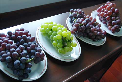 這次展銷會匯集了來自無錫大浮果農協會、大浮葡萄協會、蠡園園藝科技站、華莊街道農業科、濱湖漆塘果業合作社、江陰黃土塘迎香葡萄專業合作社、江陰志泉果業公司、宜興草莓協會、宜興韓豐生態種養專業合作社等多家專業生產無公害葡萄的協會、基地,這些專業種植基地生產的優質葡萄,在多項國家級、省、地級葡萄評比賽事中屢獲殊榮,各系列金獎、銀獎數不勝數。至于其展銷品種,更是如數家珍,有粒大飽滿的騰瞠、涌優,美人指、金手指果型奇特、巨玫瑰馨香馥郁、夏黑油黑發亮、醉金香清綠爽口……..