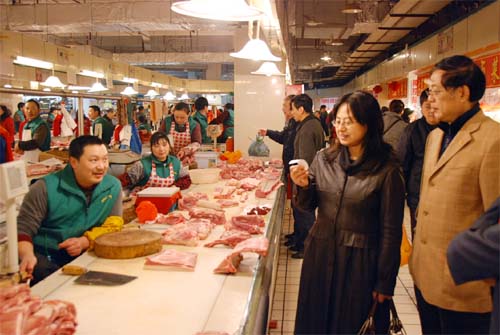 朝陽集團總經理楊興德、朝陽股份公司總經理錢韌向領導和客人們介紹了無錫朝陽集團有關發展建設情況。商務部領導對批發市場電子結算、天惠超市生鮮特色、農貿市場溯源管理等一系列現代化管理措施表示贊賞,并希望在全國推廣。