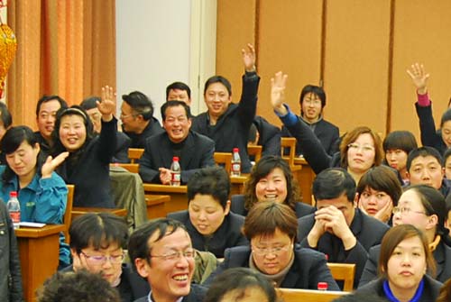 江蘇無錫朝陽集團股份有限公司為進一步落實董事會提出的“建設一支高素質干部、職工隊伍”工作要求,在天惠超市公司組織店經理業務知識預賽、選拔的基礎上,近日又組織天惠超市公司門店經理組成的五個混合代表隊進行了業務知識總決賽。