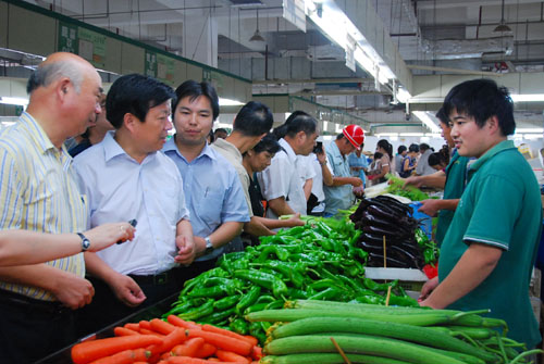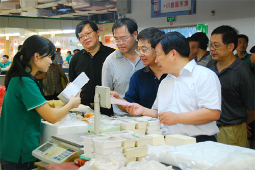 9月17日晚上至18日上午,無錫市副市長方偉率市商務局、工商局等有關部門的領導,專程前往無錫朝陽農產品市場、無錫糧油市場、無錫朝陽農貿市場、無錫天惠超市朝陽店進行節日供應、食品安全工作檢查。