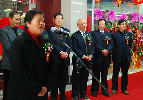 無錫市人大副主任楊惠菊、市政協副主席孫志亮、武警工程學院原院長何虎將軍、宜興市人大副主任王華良、福建省德化縣委常委宣傳部長葉長青、福建省德化縣副縣長黃發建,以及無錫朝陽集團董事長張海良、江蘇融達集團董事長石國松出席了開館儀式并為無錫藝術館揭牌、剪彩。