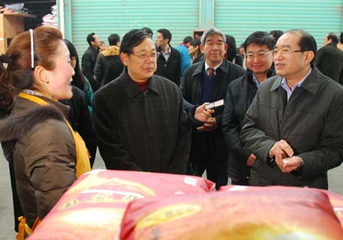徐副市長一行還來到專門經銷東北大米的商鋪前,仔細詢問東北大米的產地、品種、價格情況,當得知這些優質東北大米在無錫市場很受歡迎時,他高興地向這位客商表達感謝和新年祝福。并希望各位客商一定要把好商品安全關,為無錫提供更多優質放心的商品。