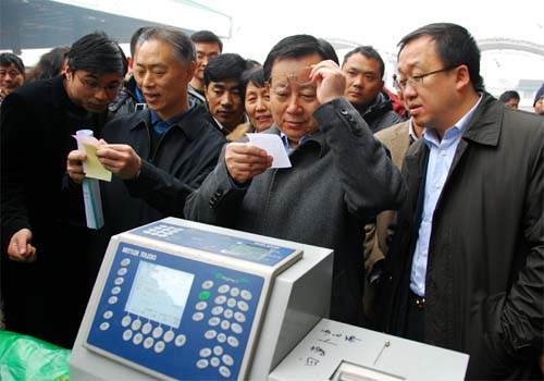 由商務部市場秩序司常司長帶領的商務部領導、來自全國二十個試點城市商務局領導、江蘇省試點城市商務局領導等一行一百六十余人,齊聚無錫。他們先后在無錫肉類、蔬菜等重要批發、零售單位進行現場考察和項目進展督查。