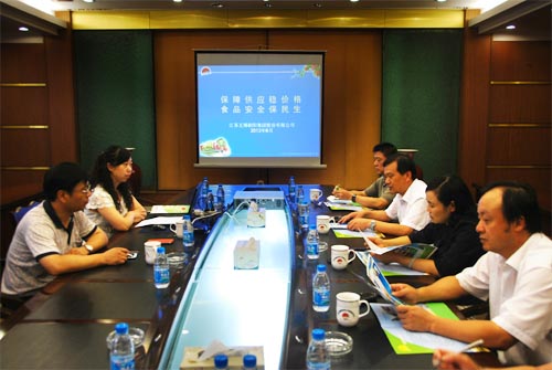 6月25日下午,無錫市南長區部分人大代表來到無錫朝陽集團,對企業發展、菜籃子建設和食品安全等工作進行考察調研。南長區人大代表、朝陽集團常務副總經理張君君向來訪客人詳細介紹了朝陽集團歷史沿革,發展現狀,以及朝陽集團在保障供應、傳送放心、穩定價格、實惠民生,自覺承擔社會責任方面所做的大量工作。