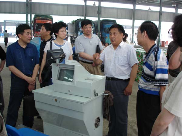 在市場,代表團聽取了朝陽股份有限公司副總經理、錫澄果菜副食品交易市場經理汪海良對錫澄市場近年來的建設、經營、管理和未來發展等方面的介紹,重點聽取了汪經理對近年來朝陽股份公司在干部任用上引進公開競聘機制優勝劣汰和工資改革上采用的“基礎工資+提成工資”的具體做法和取得的良好實效的介紹,并實地考察了錫澄市場2.5萬平方米的經營大廳,電子磅秤系統,電子監控系統和水果殘留農藥檢測情況。
