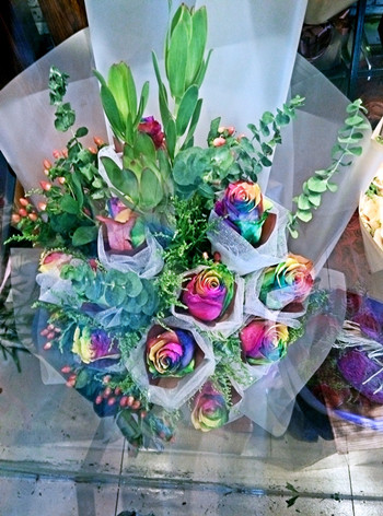 今天就是有著“中國情人節”之稱的七夕了。由于天氣炎熱,鮮花不易保存,所以此時往往是銷售淡季,但是無錫朝陽花卉市場的生意依舊火爆。 8月9日上午,我走訪了無錫朝陽花卉市場的多家花店,發現很多花店早已瞧準時機推出七夕促銷活動,有些商家還特別引進各種高檔玫瑰招攬人氣,其中就有一種新推出的玫瑰——彩虹玫瑰。