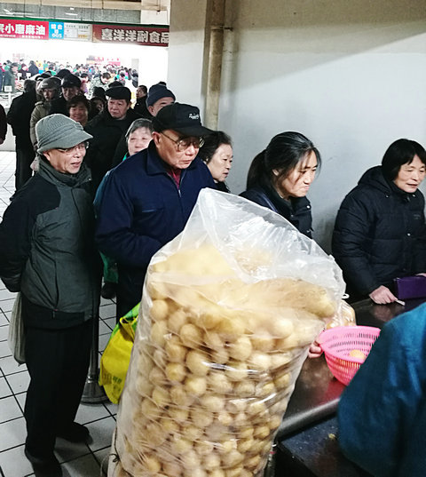 看到記者在拍照,許多老百姓都紛紛圍上來,爭著夸一夸,為“松鶴”油面筋贊上一句,“質量好!”“味道好!”“比其他油面筋清爽,經得起燒”“吃了好多年了,還是天天的好!”而工作人員則一刻不停得在忙著稱重、打包。大袋大袋的油面筋“整裝待發”,金燦燦、油亮亮,讓人看著好生歡喜。快過年了,把這圓鼓鼓的油面筋帶回家,一起共享闔家團圓的幸福和甜蜜吧!