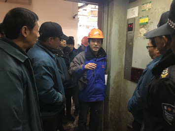 下午3點演練正式開始,農貿市場一部電梯在2層出現故障,停止運行,有多名乘客被困轎廂內。隨后被困人員撥打電梯警鈴請求救援。在接到被困人員求助后,維保人員告訴被困乘客一定要保持鎮靜,可做屈膝動作,不得撬砸電梯轎廂門,與電梯轎廂門保持一定距離。另外電梯維保人員也積極的展開救援,經過十分鐘的時間多名被困人員被成功解救。同時相關技術人員對故障電梯進行檢查,運行修復,確保電梯無故障。  通過演練和培訓,市場管理人員在電梯出現故障情況下的應急措施,在救援人員到來前,能按照正確的流程給予被困者以最大的幫助。 (供稿 洪根) |