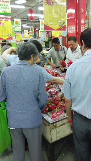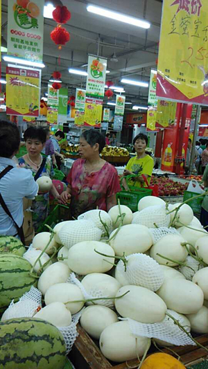 | 炎炎夏日,西甜瓜類商品無疑是廣大顧客的消費首選。天惠超市為滿足廣大顧客的需求,經與朝陽農產品的大市場對接,像麒麟、特小鳳西瓜和小白龍、西州蜜甜瓜等十余款不同品種的西甜瓜每日足量供應;并堅持薄利多銷,讓利給廣大消費者。特別是近日組織的小白龍?zhí)鸸?,不僅口感清脆香甜,價格上更是勁爆特惠僅需2.0元/斤,受到了廣大顧客的熱烈歡迎,單品日均銷售量達到5噸以上。 2017年以來,天惠超市針對水果供應做出了積極的調整。在季節(jié)性大品種上做到量足價低的同時,更進一步增加了如櫻桃、黃油桃各類花色水果品種以及像榴蓮、火龍果、山竹、藍莓等一些年輕人喜愛的進口水果供應。不但滿足和豐富了不同顧客群體的消費需求和選擇空間,并在定價上沒有因為小眾品種和進口水果的身份提高毛利空間,仍舊以平價親民的價格供應給廣大消費者。