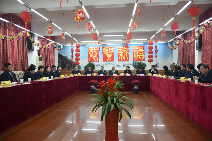 彩鳳辭舊歲,金犬迎新春。2018年2月20日(正月初五)上午9時,無錫朝陽集團2018狗年新春團拜會在集團本部三樓第五會議室隆重召開。集團經營班子和總部三個科室、朝陽股份、天惠超市、儲運公司、朝陽糧油、朝陽農貿等40余位代表濟濟一堂,共慶新春佳節,共話美好未來。會議由集團黨委書記錢韌主持。