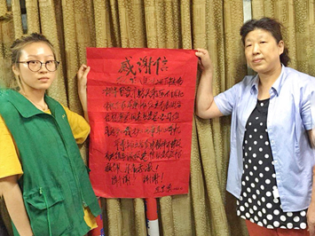今天上午,一位老年顧客顫顫巍巍地來到服務臺,一邊向工作人員遞上大紅色的感謝信,一邊會說起了事情的原委: 8月22日下午,老年顧客在蘋果攤位前丟失了一只手機,攤主撿到后立刻交到服務臺,服務臺楊翠芬通過微信朋友圈的相關信息輾轉聯系到了失主。失主當得知手機失而復得的時候,激動的連聲說“太好了,謝謝、謝謝”。并贊揚了朝陽農貿市場經營戶拾金不昧的精神,感謝朝陽農貿市場優質的服務,這也充分體現了朝陽農貿市場為民、利民、便民的服務宗旨。
