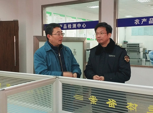 胡局一行先后來(lái)到監(jiān)控中心、蔬菜備案中心、檢測(cè)中心、結(jié)算中心,聽(tīng)取了朱總就大市場(chǎng)在溯源體系建設(shè)、蔬菜準(zhǔn)入、農(nóng)產(chǎn)品檢測(cè)、食品安全維護(hù)等工作的匯報(bào)。隨后他們又來(lái)到蔬菜、水果、家禽市場(chǎng),現(xiàn)場(chǎng)檢查了農(nóng)產(chǎn)品在市場(chǎng)流通的各個(gè)環(huán)節(jié),了解了索證索票、消毒消殺等工作的執(zhí)行落實(shí)情況,對(duì)市場(chǎng)在食品安全方面所做的工作表示認(rèn)可,并希望市場(chǎng)在春節(jié)期間進(jìn)一步加強(qiáng)食品安全工作,確保消費(fèi)者買得放心、吃得放心。