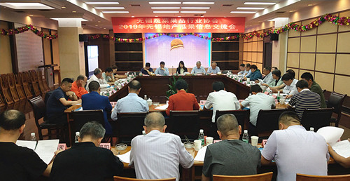 5月20日上午,無錫蔬菜果品行業協會2019年無錫地產瓜果信息交流會在朝陽農產品大市場召開。來自無錫各縣、區果品生產基地的領導、代表、農業生產管理部門領導、朝陽集團、批發市場、天惠超市有關領導、來錫交流考察的甘肅白銀市有關縣領導,以及無錫日報、江南晚報、電視臺新聞頻道、都市資訊頻道、江南之聲、經濟頻率等媒體記者共五十多人出席會議。