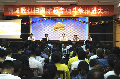 今年是開展掃黑除惡專項(xiàng)斗爭(zhēng)的攻堅(jiān)之年,也是關(guān)鍵之年。為進(jìn)一步掃除黑惡犯罪,弘揚(yáng)社會(huì)正氣,5月29日下午,無錫朝陽股份有限公司聯(lián)合劉潭派出所在二樓會(huì)議室召開掃黑除惡專項(xiàng)斗爭(zhēng)推進(jìn)大會(huì)。來自各市場(chǎng)、部門的客商、商戶、租賃戶等230余人參加了此次大會(huì)。