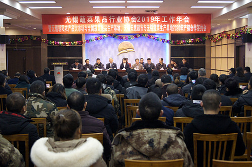 12月4日上午,無錫蔬菜果品行業協會2019年工作年會暨無錫朝陽農產品大市場與全國蔬菜果品生產基地、無錫天惠超市與無錫市蔬菜生產基地2020年蔬果產銷合作簽約會在朝陽農產品大市場二樓會議室召開。協會會員、基地代表、朝陽集團、朝陽股份和天惠超市主要領導近200人出席了會議。無錫市工商聯副主席竇林先生、無錫市民政局副調研員劉長風先生應邀出席了本次會議。無錫日報、江南晚報、無錫廣播電視臺等主流媒體記者到會采訪。