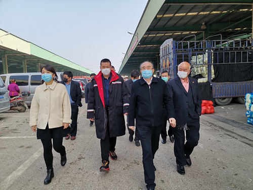 1月30日下午,無錫市委副書記徐劼蒞臨朝陽農產品大市場檢查指導防控新型冠狀病毒感染肺炎疫情和農產品供應保障工作,無錫朝陽集團創始人張海良、無錫朝陽集團董事長張君君率領導班子一行人陪同。