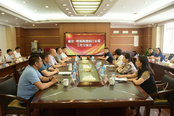 | 為推進梁溪區(qū)和循化縣兩地對口支援工作,6月16日下午,梁溪區(qū)人大常委會副主任、區(qū)工商業(yè)聯(lián)合會主席、循化縣人民政府副縣長姚凱,循化縣副縣長韓偉率東西部扶貧協(xié)作領(lǐng)導小組成員及循化當?shù)仄髽I(yè)代表,赴朝陽集團組織召開對口支援工作交流會,區(qū)發(fā)改委、區(qū)商務(wù)局、區(qū)機關(guān)事務(wù)管理局、區(qū)工商聯(lián)等有關(guān)部門負責人,以及包括朝陽集團在內(nèi)的無錫10家企業(yè)代表參加了交流座談。集團黨委書記、工會主席錢韌和集團副總經(jīng)理張慶卿參加了會議。 在集團三樓會議室,艾麥爾、天椒、伊嘉味、駝鈴等4家循化當?shù)仄髽I(yè)將各自的主打特色產(chǎn)品進行了布展和介紹推廣。雙方企業(yè)代表在現(xiàn)場進行了接洽交流,區(qū)相關(guān)部門圍繞企業(yè)對接、市場拓展、運營模式等方面進行了交流,共同為促進消費扶貧出謀劃策。