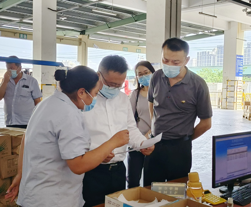 檢查組一行首先來到陳列館、信息中心,全面了解了市場的建設發展情況,以及市場通過信息化大數據平臺,開展科學防疫、精準管控的具體舉措。隨后檢查組又實地參觀了檢測中心、結算中心、蔬菜、水果兩大市場、冷庫和糧油市場,對市場在疫情期間認真履行保供穩價的社會職責、確保食用農產品安全表示肯定。
