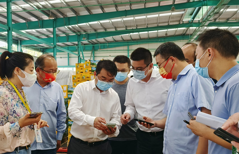 檢查組一行首先來到陳列館,全面了解市場通過信息化大數據平臺,開展科學防疫、實行人、車、貨全程溯源,嚴格中高風險地區來貨車輛管控的具體舉措。隨后檢查組又來到檢測中心、結算中心、蔬菜、水果兩大市場、冷庫及糧油市場,現場隨機抽檢了幾名商戶的核酸檢測情況,查看了從業人員數字身份在市場防疫中的應用。