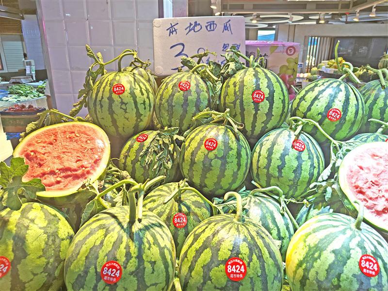 西瓜是當之無愧的“夏日頂流”,品種日益豐富的同時,價格也便宜了不少。朝陽水果市場相關負責人表示,目前廣東、江蘇北部的西瓜都已大量上市,8424、特小鳳、麒麟瓜“三分天下”。