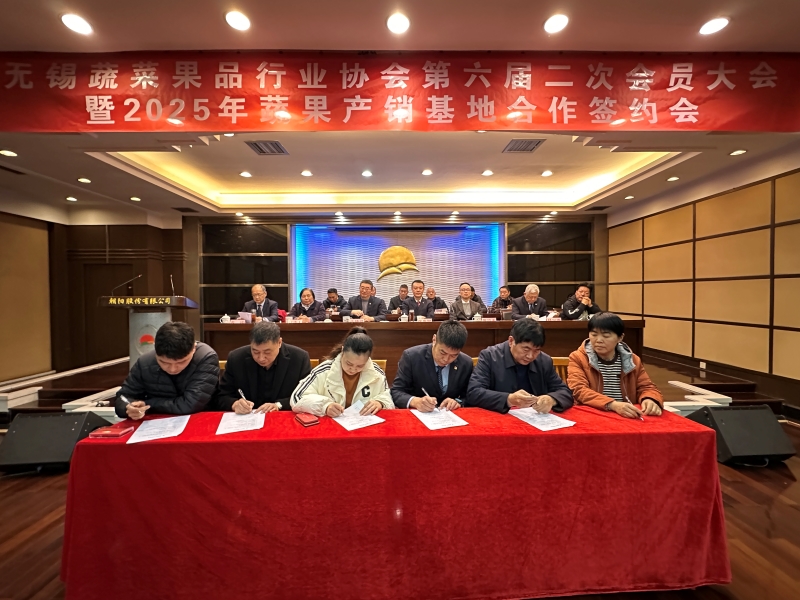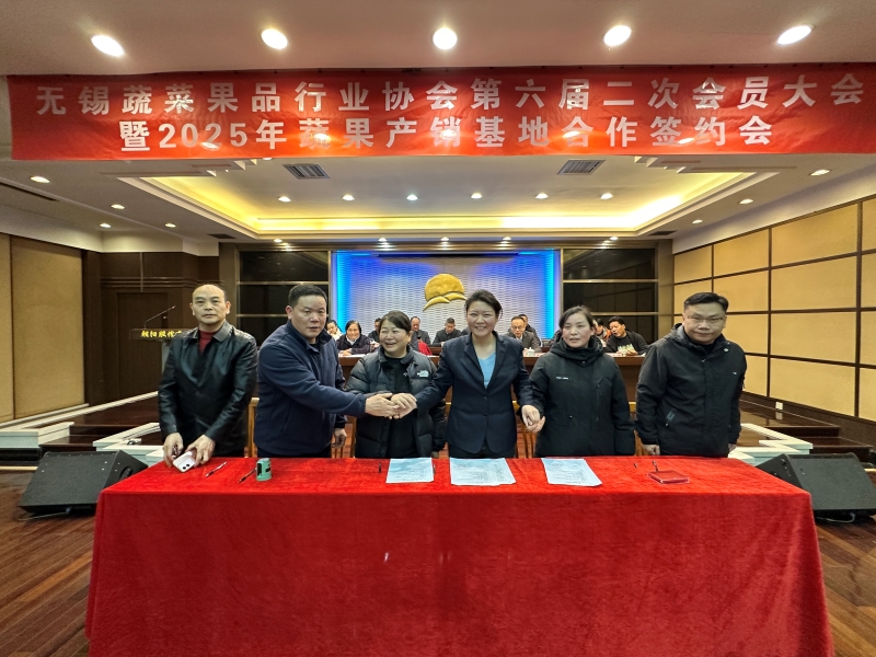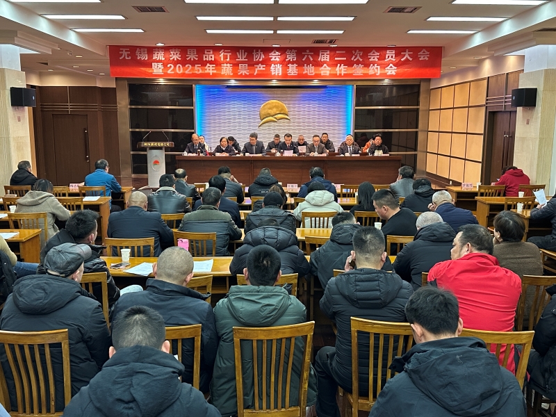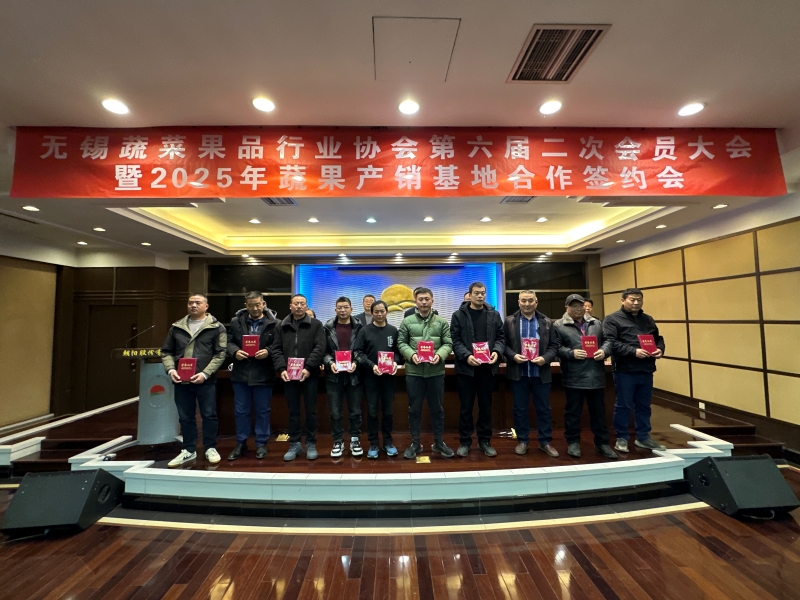 12月10日上午,無錫蔬菜果品行業協會六屆二次會員大會暨2025年蔬果產銷基地合作簽約會在朝陽農產品大市場召開。無錫蔬菜果品行業協會會員、全國及無錫蔬果生產基地代表、蔬果行業各單位、各部門有關人員共151人參會,無錫市工商聯副主席蔣誼春出席會議,無錫日報、江南晚報、無錫廣播電視臺等主流媒體記者到會采訪。
