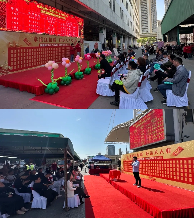 此次活動特別邀請了蔬菜、水果兩大市場在第一季度進貨額排名前 200 名的會員參與抽獎。現場清風拂面,廣大會員熱情高漲,員工、客商、會員代表紛紛登臺獻藝,以精彩的暖場歌曲為會員們加油鼓勁,送上人人皆能斬獲大獎的美好祝福,祝愿大家攜手市場一同成長,一路生花,繽紛燦爛,創造更美好的明天。