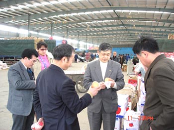 3月11日,中國果品流通協會常務副會長傅秀泉、副會長陳光輝、信息部助理孟偉來錫澄果菜副食品交易市場視察工作。朝陽集團公司總經理楊興德先生陪同。