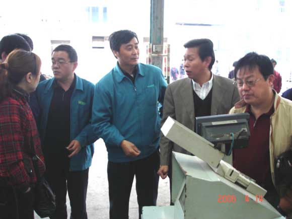 在朝陽農(nóng)產(chǎn)品大市場參觀期間,朝陽股份副總經(jīng)理汪海良、湯建興分別向杭州客人介紹了市場經(jīng)營管理和使用電子磅秤交易系統(tǒng)情況。雙方就大市場建設(shè)和經(jīng)營管理等方面進行了交流與探討。
