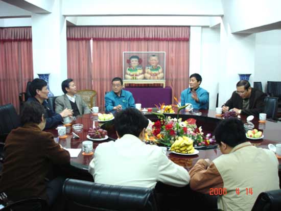 4月13日-14日,杭州果品有限公司董事長、總經(jīng)理王海根一行8人到朝陽農(nóng)產(chǎn)品大市場參觀考察。朝陽集團公司董事長張海良、總經(jīng)理楊興德,朝陽股份公司總經(jīng)理錢韌等熱情接待了來訪的杭州客人。
